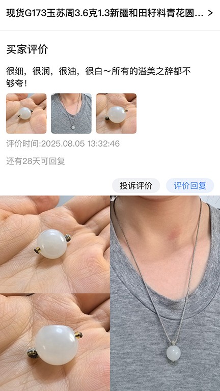 感谢顾客的返图,期待更多朋友加入返图行列,秀出您与玉苏周和田玉的独特故事,让这份温润之美传递得更远!