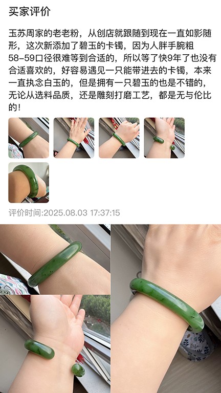 每一张照片都是人与玉的缘分见证,每一份反馈都饱含对我们的信任与喜爱。